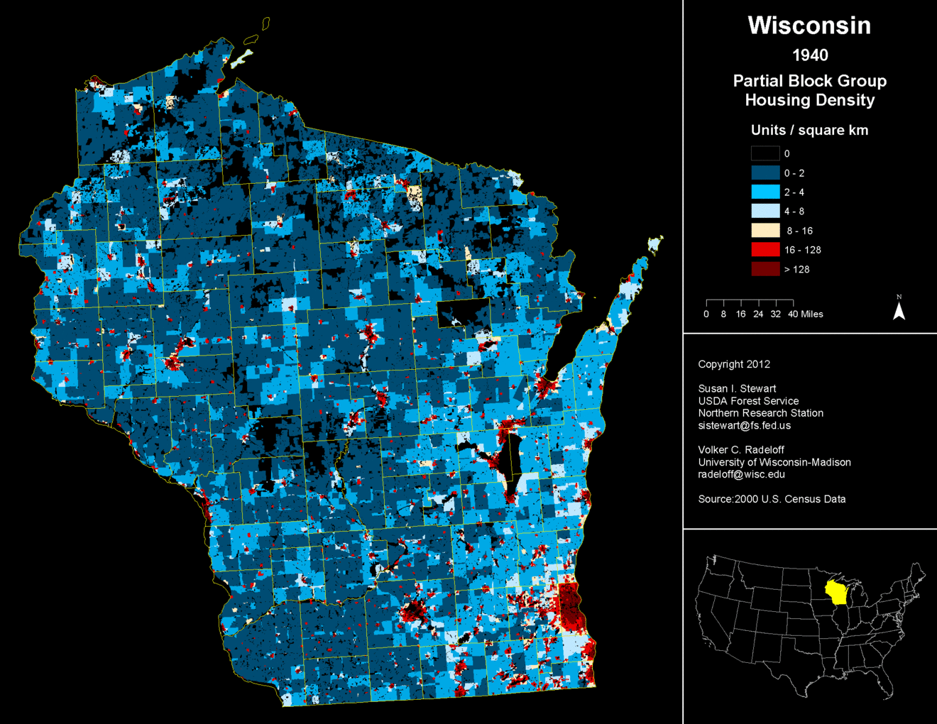 Animation showing projected housing density in Wisconsin between 1940 and 2100